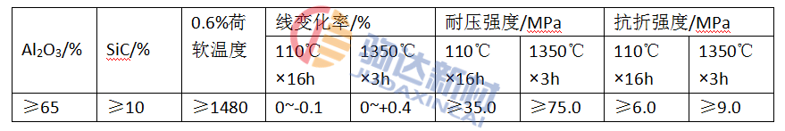 注:表中的理化性能數(shù)據(jù)來(lái)自Al2O3-SiC澆注料生產(chǎn)廠