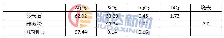 自流澆注料所采用的主要原材料性能指標(biāo)見表1。