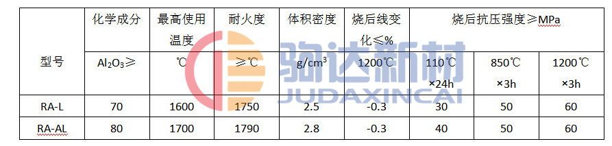 RA系列超高強度低水泥澆注料技術(shù)指標