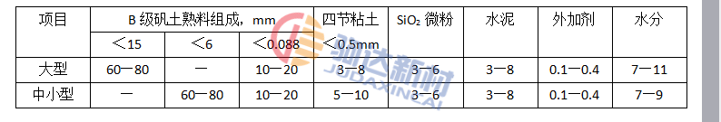 預(yù)制塊的混料過程非常關(guān)鍵,必須嚴格遵循加料循序。混煉時,盡量保持原來顆粒不被破壞;施工十分窯嚴格控制在配比的范圍內(nèi)。