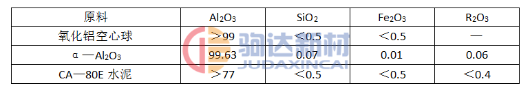 本文通過對主要原料氧化鋁空心球、鋁酸鈣水泥的原料化學組成和礦物相分析,結合CaO—Al2O3系統相圖及制品X—射線衍射的結果進行研究,并通過相關實驗,就低水泥結合氧化鋁空心球輕質澆注料的性能進行了研究。