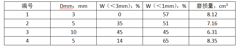 表1 各組組份粒度特征和磨損量