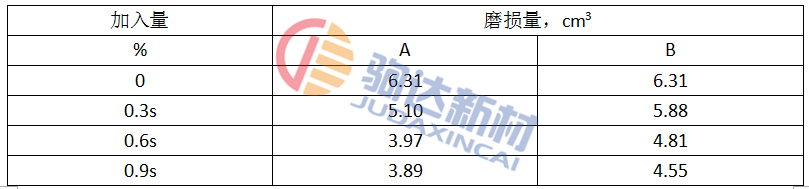 以3號試樣配方為基礎,試驗A、B兩種抗磨劑的不同加入量對澆注料耐磨性的影響。影響見表2。