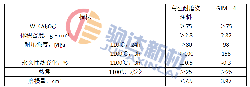 表3 高強耐磨料同GJM—4型料性能比較